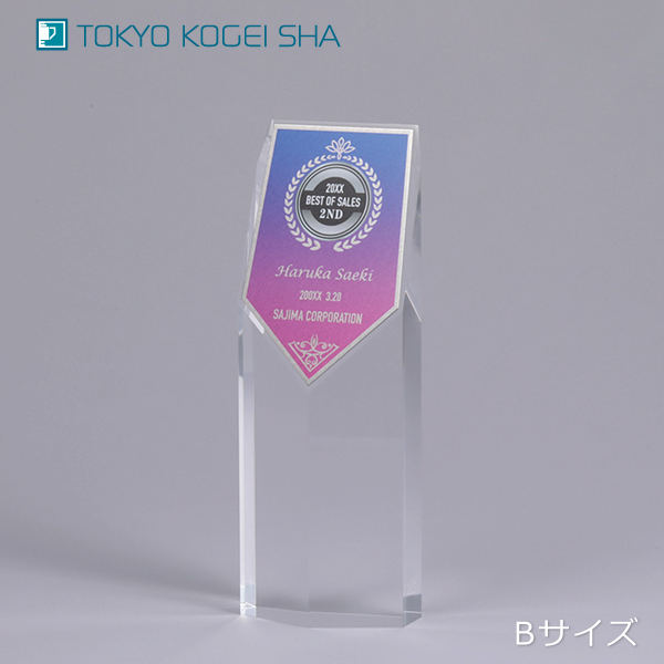 重厚感のあるアクリル本体に、上品な銀色のステンレスプレートを貼り付けた高級トロフィーです。ステンレス表面にはフルカラー印刷が可能で、企業ロゴや表彰内容を鮮やかに表現できます。シンプルながら洗練されたデザインは代理店表彰や販売実績表彰など、ビジネスシーンでの特別な場面にふさわしい仕上がり。3サイズ展開で表彰内容に応じた選択ができ、ロゴ加工によるオリジナリティも実現。透明感あるアクリルと銀色の輝きが融合し、受賞者に誇りと喜びを伝える特別な記念品です。